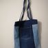 Krásná ručně vyrobená taška z vysloužilého oblečení (zejména rifloviny). Uvnitř je jedna velká kapsa a jedna menší a z vnější strany má další kapsičku. Tento model má dlouhé ucho, takže je vhodný pro nošení přes rameno.